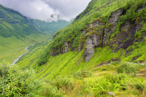 Fototapeta premium Spectacular views of the Myrkdals Valley and its river, Norway