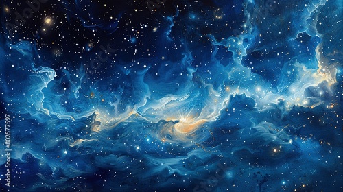 © andryan, Fototapeta premium Spectral Harmonies: Watercolor Interpretation of Space and Scorpio