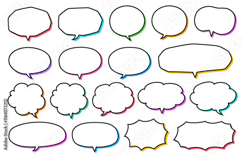 Obraz premium 吹き出し フレーム 枠 セット 素材 飾り 線 丸 四角 横長 おしゃれ ポップ シンプル もこもこ もくもく ふわふわ あしらい 見出し タイトル 囲み 立体的 ペン サインペン 会話 しゃべる びっくり 驚き Speech Bubble