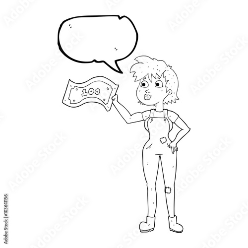 Obraz premium speech bubble cartoon confident farmer woman with money