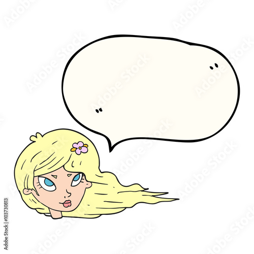 © lineartestpilot, Obraz premium speech bubble cartoon woman with blowing hair