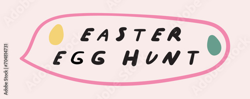 © Igor, Naklejka premium Speech bubble - Easter egg hunt. Flat vector hand drawn illustration on pink background.