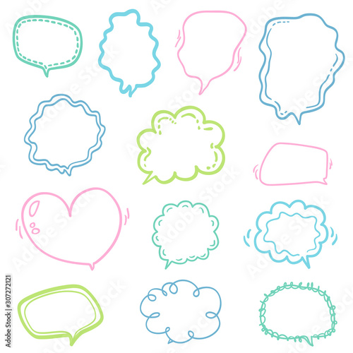 Fototapeta premium Speech bubble on white. Multicolored hand drawn think and talk speech bubbles