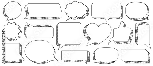© Chikichirony, Fototapeta premium Speech bubble set 3d style cloud talk black white color isolated on white background vector 10 eps