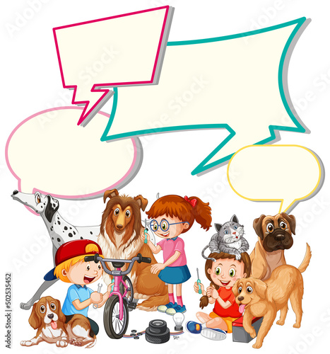 Obraz premium Speech bubble template with kids and pets