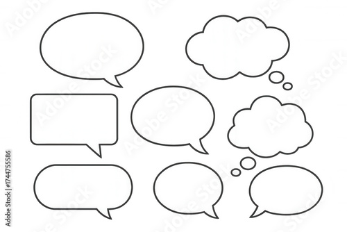 Fototapeta premium Speech bubbles and thought clouds communicating ideas, dialogue, and comic...