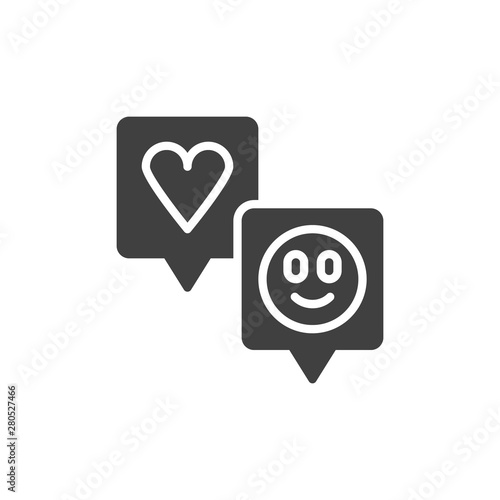 Fototapeta premium Speech bubbles with heart and smiley vector icon. filled flat sign for mobile...