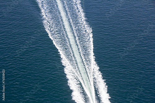 © smuki, Fototapeta premium Speed boats trace on the blue sea