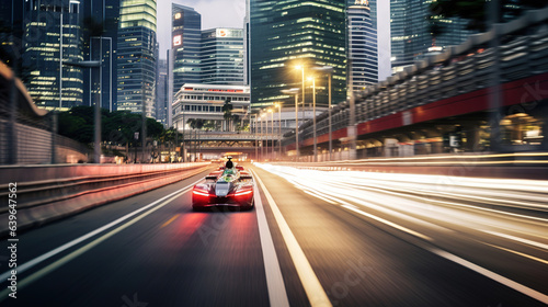 © arhendrix, Fototapeta premium Speed car racing track city street circuit dramatic background