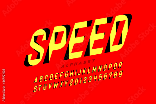 © piai, Fototapeta premium Speed style font, alphabet letters and numbers