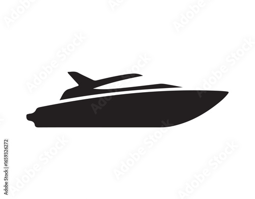 © Design_Circle, Obraz premium Speedboat line and glyph symbol, motor vessel and shoreline, motorboat vector illustration, vector imagery, adjustable stroke outline emblem