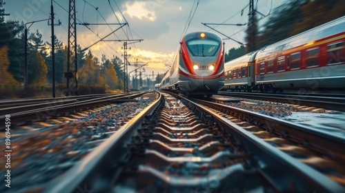 © wiraphat, Fototapeta premium Speeding Fast Train in Close Up Perspective with Blurred Motion Effect