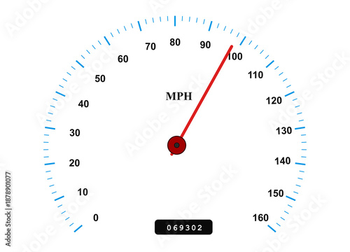 © MDSakib, Fototapeta premium Speedometer showing 95 mph isolated on transparent background. Speedometer PNG.