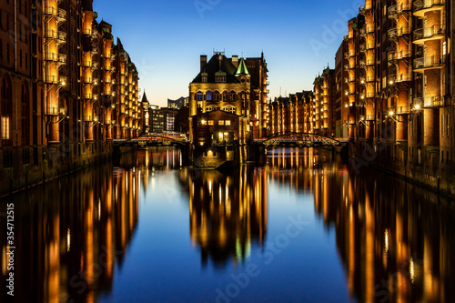 Fototapeta premium Speicherstadt Hamburg in der Dämmerung