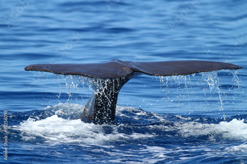 © Geza Farkas, Naklejka premium Sperm whale diving and splashing with tail