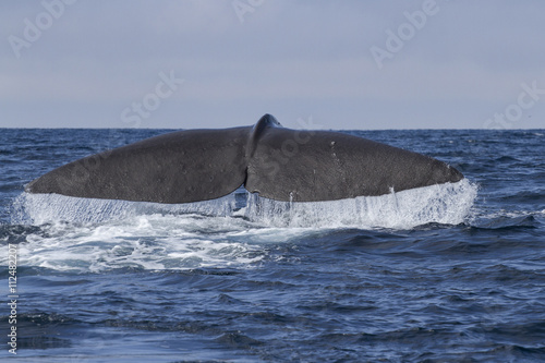 Fototapeta premium sperm whale tail before diving into the water on a sunny day