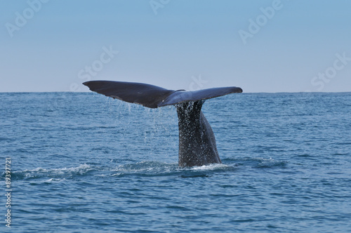 Naklejka premium Sperm Whale tail. Picture taken from whale watching cruise in Kaikura, New Zealand