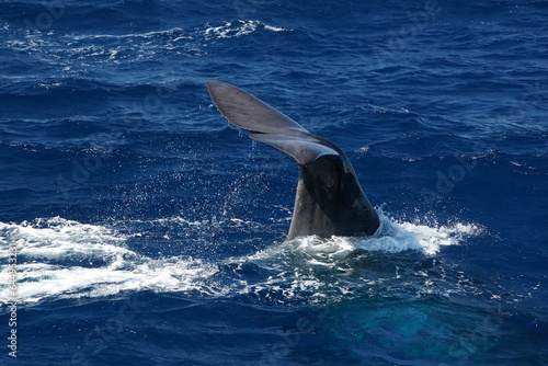 © Izanbar photos, Fototapeta premium spermwhale on sea surface Sperm Whale diving tail detail somersault in mediterranean sea