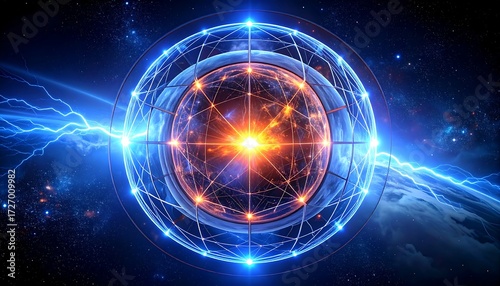 © Yoi, Fototapeta premium Sphere of light, network, cosmic energy