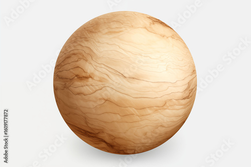 © Nonthakorn, Obraz premium Spherical ball made of birch wood isolated on white background.