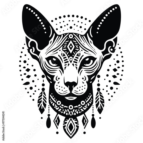 Obraz premium Sphynx Cat in bohemian black and white silhouette illustration