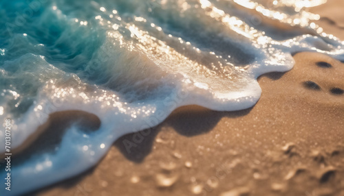 Obraz premium Spiaggia di Sabbia, Onde Trasparenti e Bagliori del Sole
