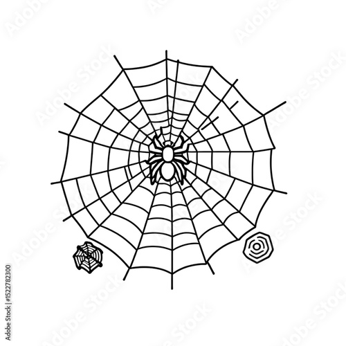 Obraz premium クモの巣とクモの線画|Spider and Web Line Drawing