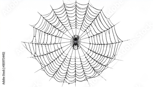 © Muhammad, Fototapeta premium Spider centered in intricate web against white background, showcasing natural symmetry and biological design.