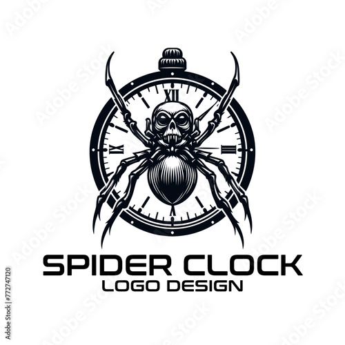 © isuru, Obraz premium Spider Clock Vector Logo Design