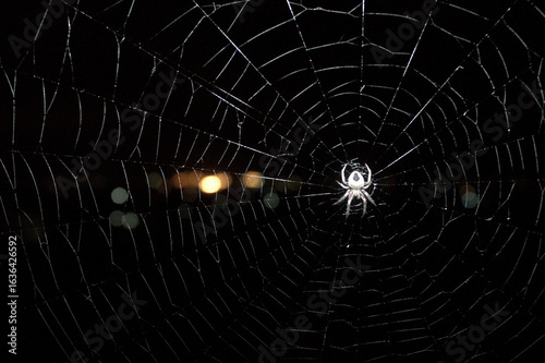 Obraz premium Spider In A Web with light bokeh