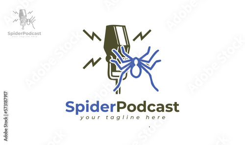 Obraz premium Spider logo design combined with podcast microphone. vector