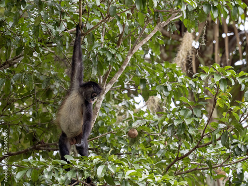 Fototapeta premium Spider Monkey, Ateles geoffroyi, chooses only ripe fruits in the rainforest,...