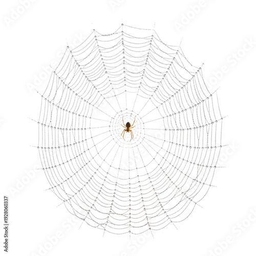 © ViThyTrang, Obraz premium Spider on detailed orb web with transparent background