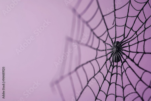 Obraz premium Spider on spiderweb with color background, Halloween concept