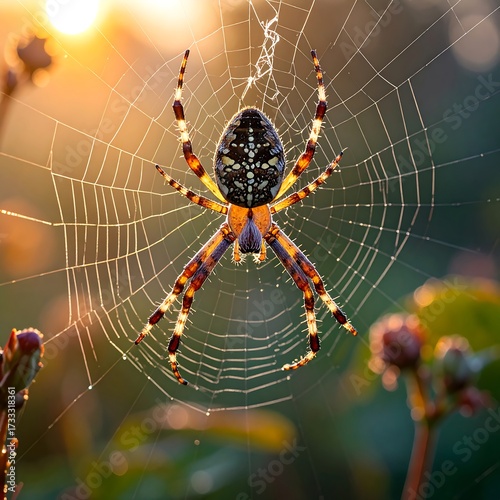 © Jun, Obraz premium Spider on sunrise web