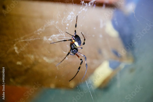© Luis Lima Jr, Fototapeta premium Spider on the roof with web on the walls.