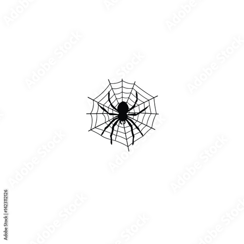 © KamrulHasan, Fototapeta premium Spider on web silhouette on white background