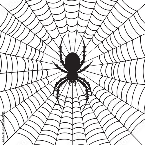 Fototapeta premium Spider Weaving Web Silhouette , black silhouettes isolated on white background
