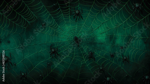 © Graphics.Parasite, Naklejka premium Spider Web A spooky and crawly background for your Halloween designs AI Generative