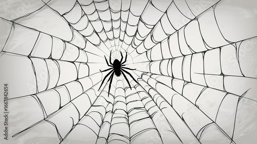 © Ichsan, Obraz premium Spider web black and white vector illustration