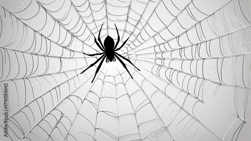 © Ichsan, Obraz premium Spider web black and white vector illustration
