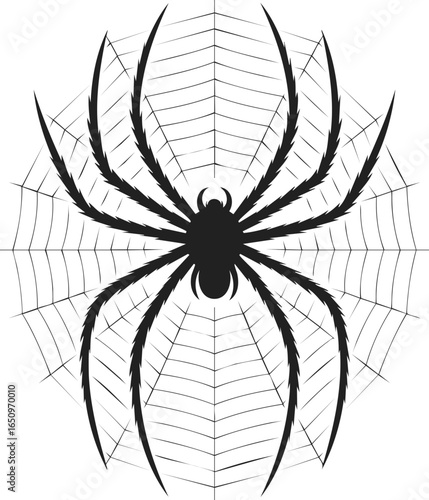 © Сергей Тарасюк, Obraz premium Spider web, black widow design, intricate web drawing, arachnid art, vintage engraving style illustration with detailed patterns