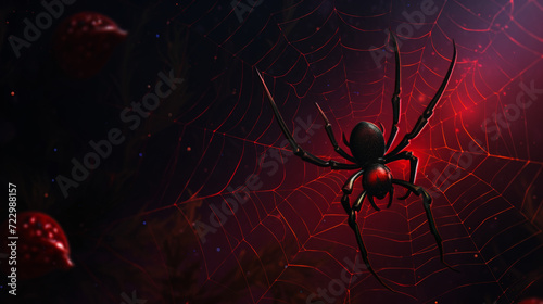 © Andreas, Naklejka premium Spider web blue and red background generated with ai