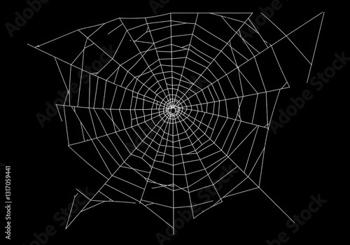 © Rehena, Fototapeta premium Spider web, corner view, intricate pattern, black and white, minimalist design, geometric, arachnid architecture, silk strands, Halloween aesthetic, Gothic