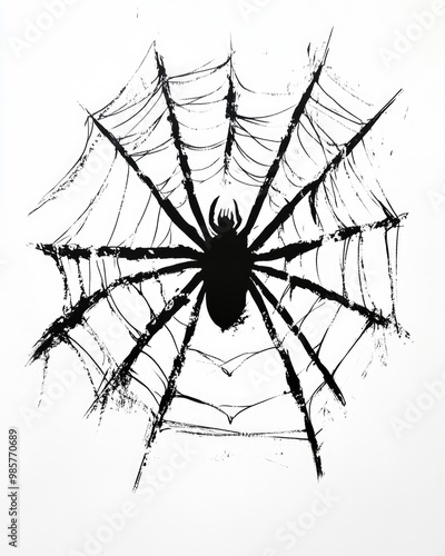 © AkuAku, Fototapeta premium Spider Web Doodles and Silhouettes for Halloween