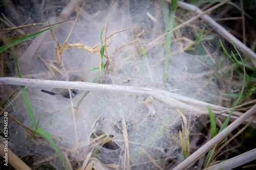 Obraz premium Spider web on the grass