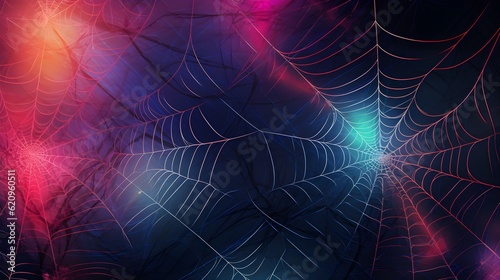 © Andreas, Naklejka premium Spider web purple and blue background generated with ai