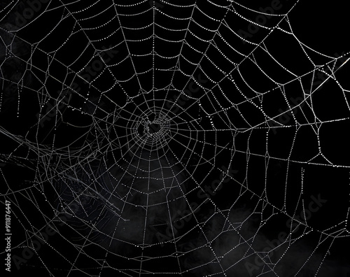 © Daniel, Fototapeta premium Spider web silhouette against black wall - halloween theme dark background