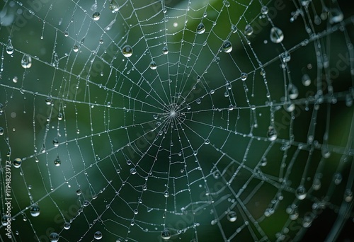 © Hussna, Obraz premium spider web with dew drops