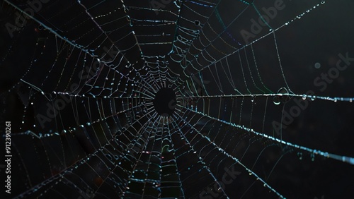 © Photographybd60, Naklejka premium spider web with dew drops